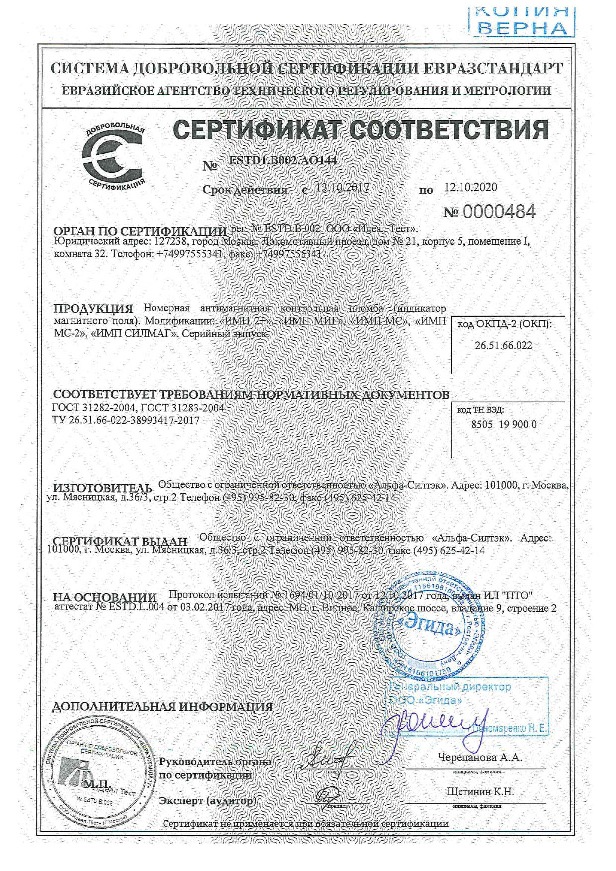 Пломбы антимагнитные